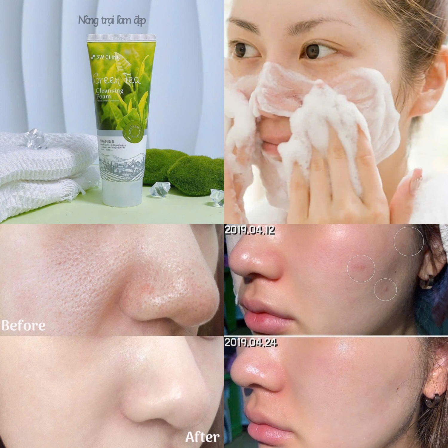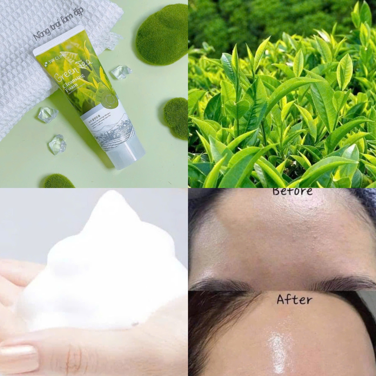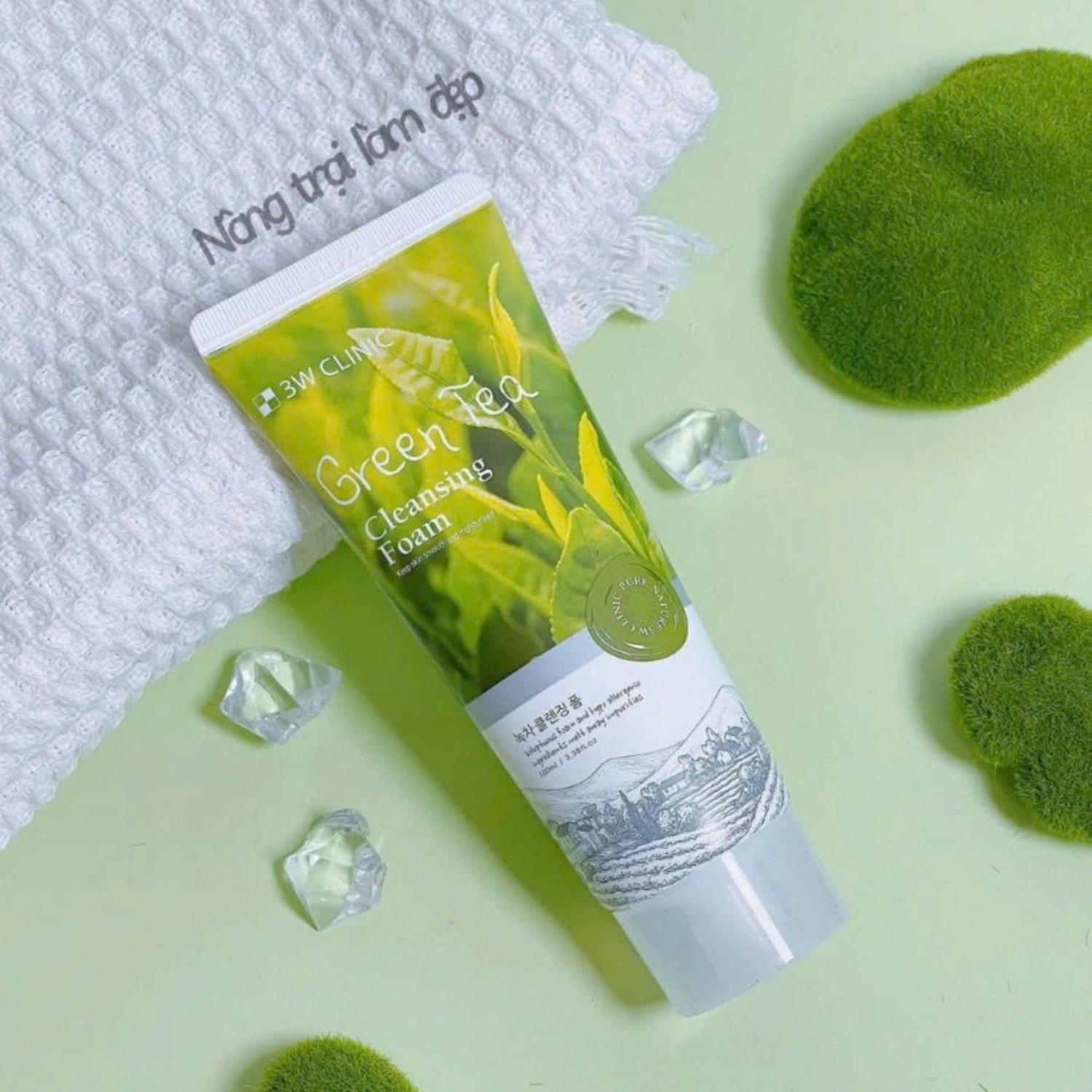 Sữa rửa mặt trà xanh 3W Clinic Green Tea Foam Cleansing với chiết xuất trà xanh, Vitamin E, giúp , làm sạch da, loại bỏ tế bào chết, mới, cho da trắng sáng. Đặc biệt, sản phẩm giúp ngừa lão hóa, ngừa ung thư, nhờ các tinh chất chống ung thư có trong lá trà, cho da chắc khỏe, mịn màng.